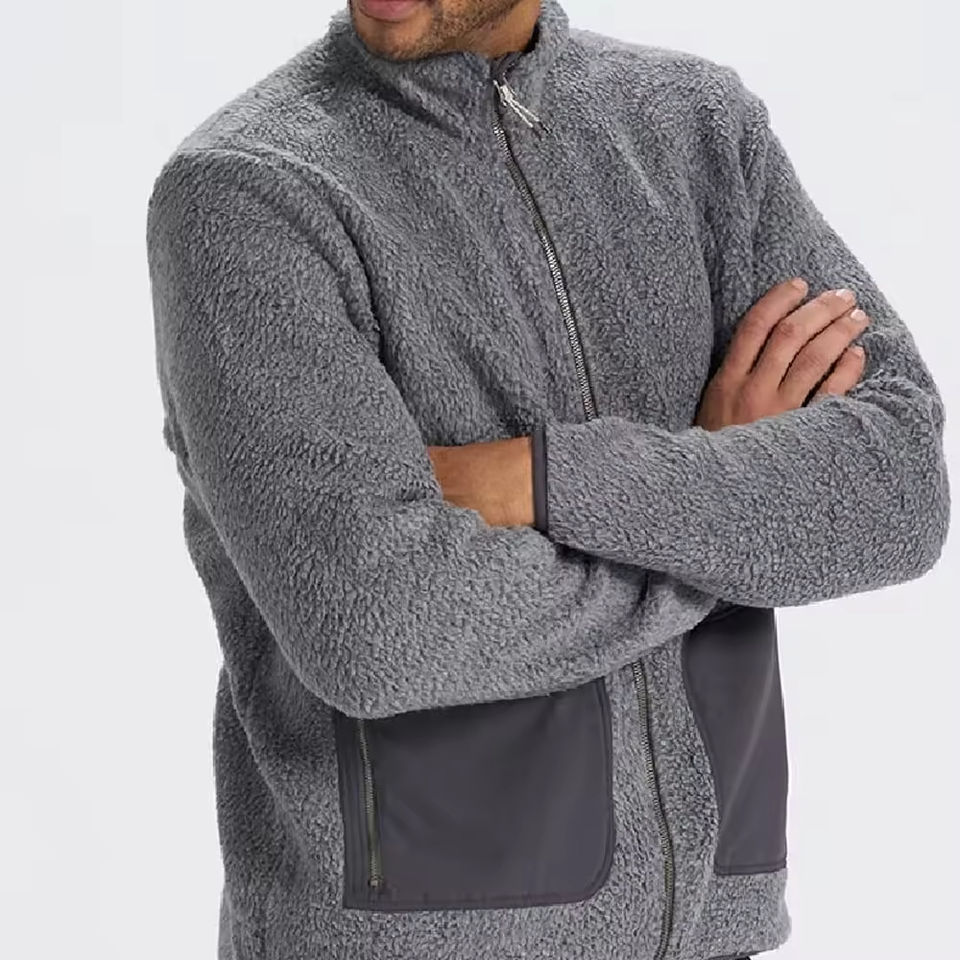 เสื้อแจ็คเก็ตขนเฟลซเชอร์ปาปักโลโก้แบบกำหนดเอง ทรงโอเวอร์ไซส์ หนานุ่ม ซิปแบบโพลาร์ สำหรับผู้ชาย เสื้อแจ็คเก็ตขนเฟลซสำหรับฤดูหนาว