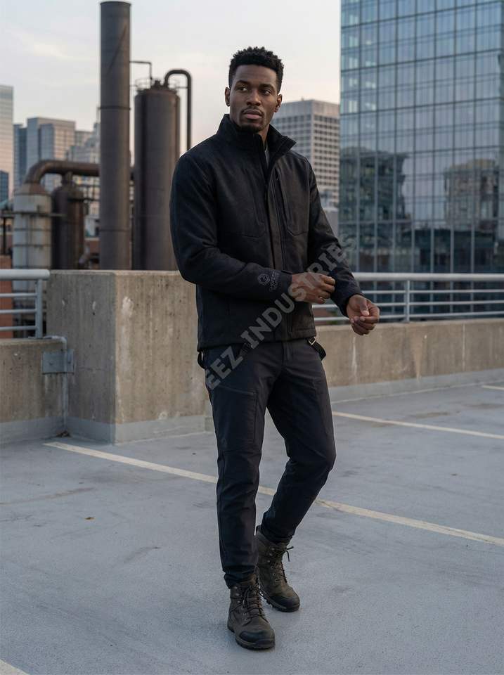 เสื้อแจ็คเก็ตหนังกลับกันน้ำพิมพ์ลายเรียบสำหรับนักล่าสัตว์มืออาชีพและกีฬากลางแจ้ง พร้อมโลโก้สั่งทำพิเศษ