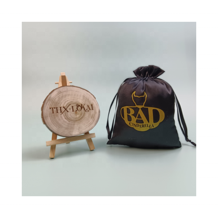 ถุงใส่วิกผ้าซาตินมีพู่ห้อยทำจากผ้าซาตินปักโลโก้ได้ตามต้องการถุงใส่เครื่องประดับถุงเก็บฝุ่นผ้าซาตินขนาด13x18ซม.