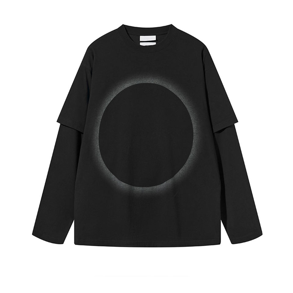 เสื้อยืดวินเทจผู้ชายแขนยาวสองชั้นผ้าฝ้ายแท้ 100% พิมพ์ลายโลโก้ตามสั่งด้วยเทคนิคซิลค์สกรีน