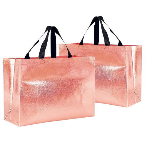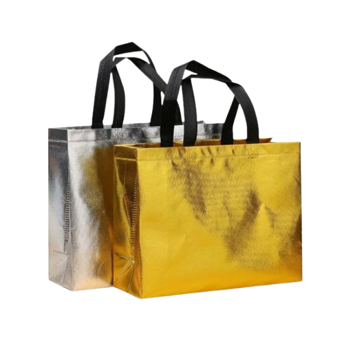 ถุงช้อปปิ้งเคลือบเมทัลลิกแบบมีหูหิ้ว ผลิตในเวียดนาม ขายส่ง รับทำโลโก้ สีเงิน สีทอง ผ้าไม่ทอ