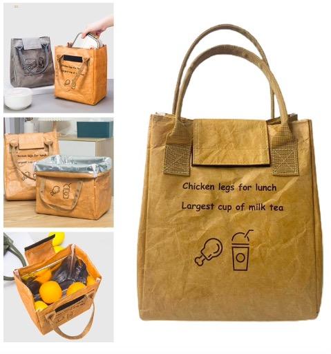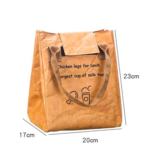 กระเป๋าเก็บความเย็นแบบใช้ซ้ำได้ ทำจากกระดาษคราฟท์ดูปองท์ สำหรับใส่อาหารกลางวัน ลายโลโก้เรียบง่าย สำหรับเด็ก ผู้หญิง ไปปิกนิก