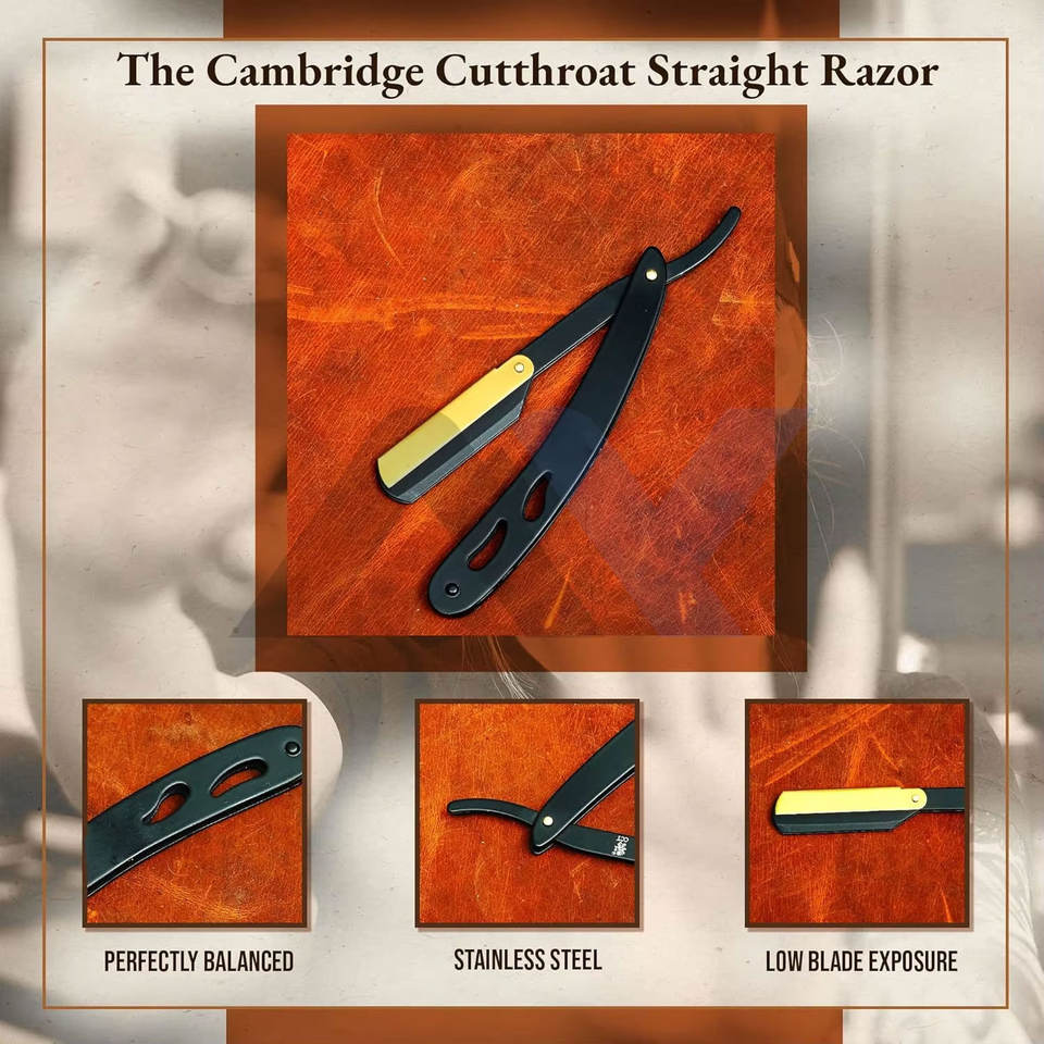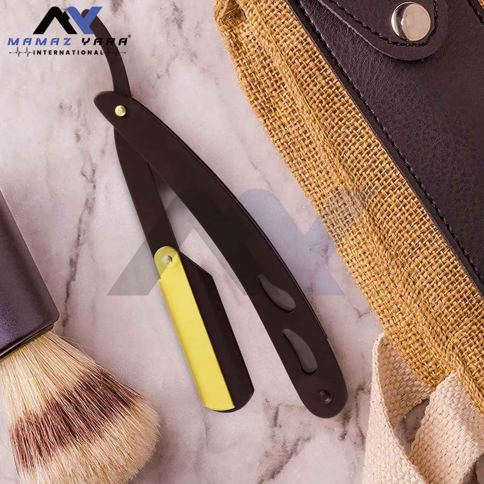 ชุดมีดโกนหนวดแบบใบมีดเดี่ยวสไตล์ตุรกี พร้อมกระเป๋าเดินทางสำหรับมืออาชีพ สีดำทอง สแตนเลสสตีล รับสกรีนโลโก้ตามสั่ง