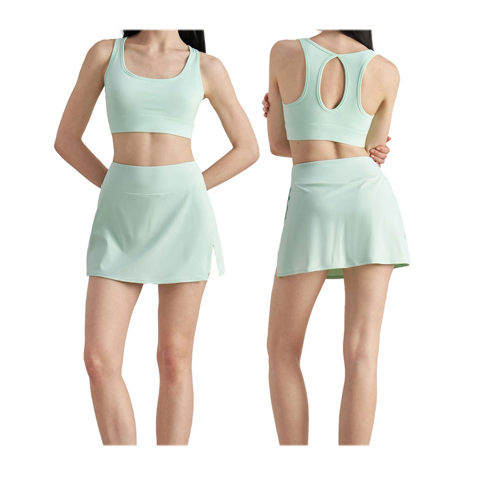 ชุดเทนนิสเล่นกีฬา2ชิ้นและกระโปรงพิคเกิลบอลเอวสูงมีกระเป๋าสปอร์ตบราระบายอากาศเป็นมิตรกับผิวโลโก้แบบกำหนดเอง