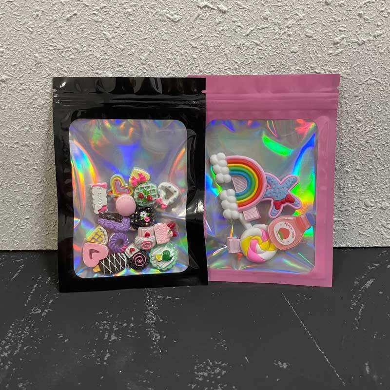 ใหม่คุณภาพสีใสบรรจุภัณฑ์พลาสติกพีวีซีสีชมพูขนาดเล็กโลโก้ที่กำหนดเองถุงซิปล็อคโฮโลแกรมสำหรับเครื่องประดับ