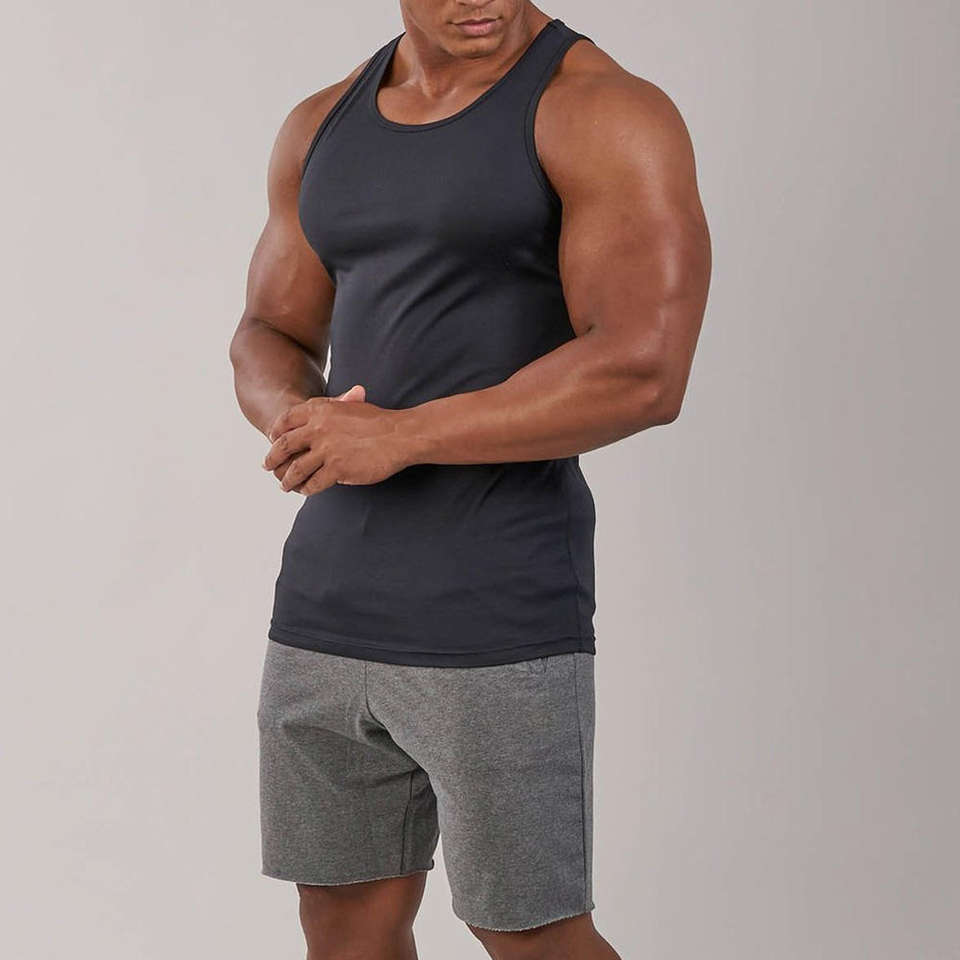 เสื้อกล้ามออกกำลังกายผู้ชายสีพื้นโลโก้แบบกำหนดเอง ระบายอากาศได้ดี ไซส์อเมริกา ผ้าริบ ยืดหยุ่นได้ ไซส์ใหญ่พิเศษ เสื้อกล้ามโชว์กล้ามเนื้อ ผ้าถัก แห้งเร็ว