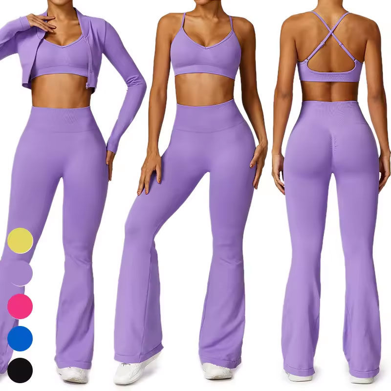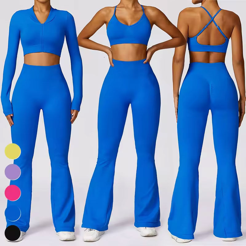 ชุดออกกำลังกาย3ชิ้นของผู้หญิงกางเกงเลกกิ้งเล่นยิมฟิตเนสและแจ็คเก็ตแขนยาวโลโก้ตามสั่ง