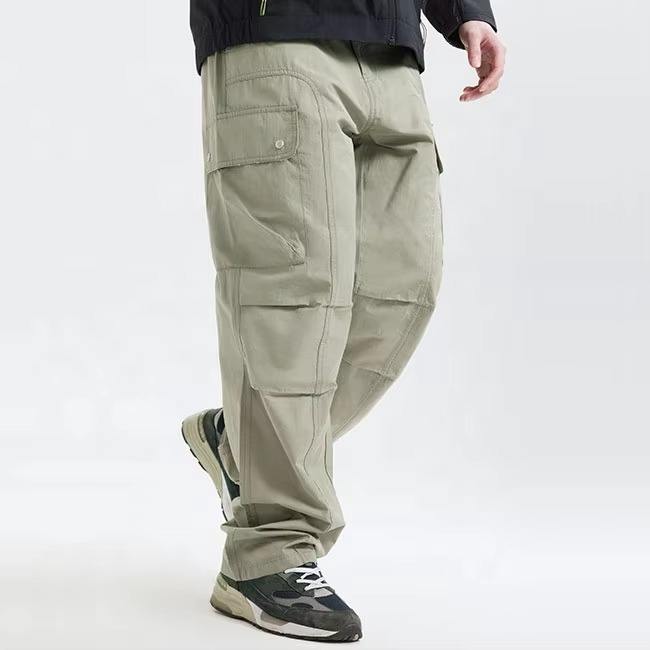 กางเกงคาร์โก้ผู้ชายกางเกงกีฬาขาตรงแบบหลายกระเป๋ากางเกงคาร์โก้แบบกำหนดเองโลโก้