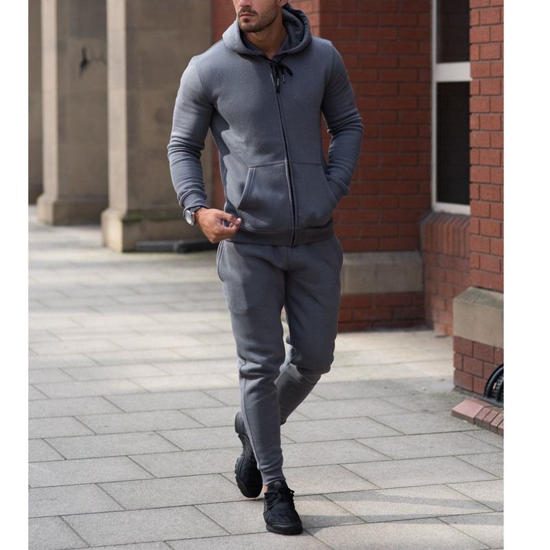 Custom Logo Solid Tracksuit Pants Set Sports Casual Winter Anti-Bacterial Breathable