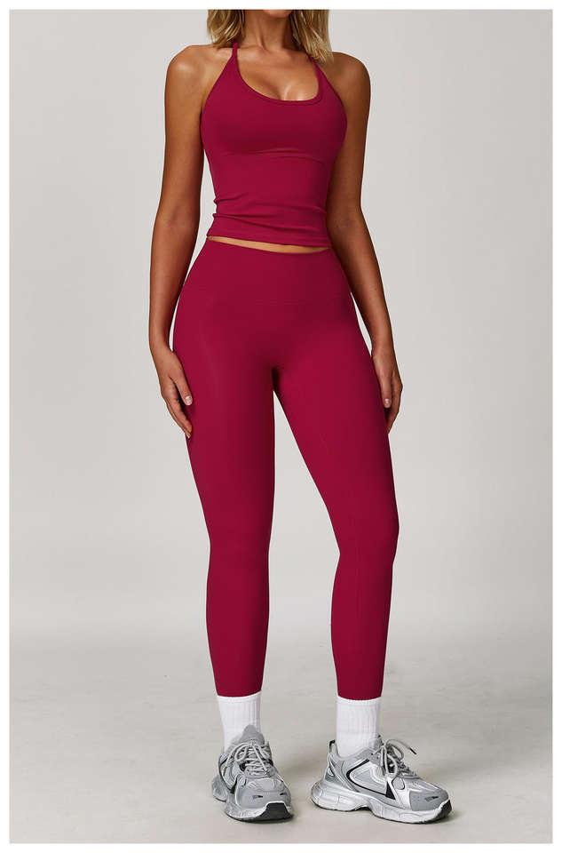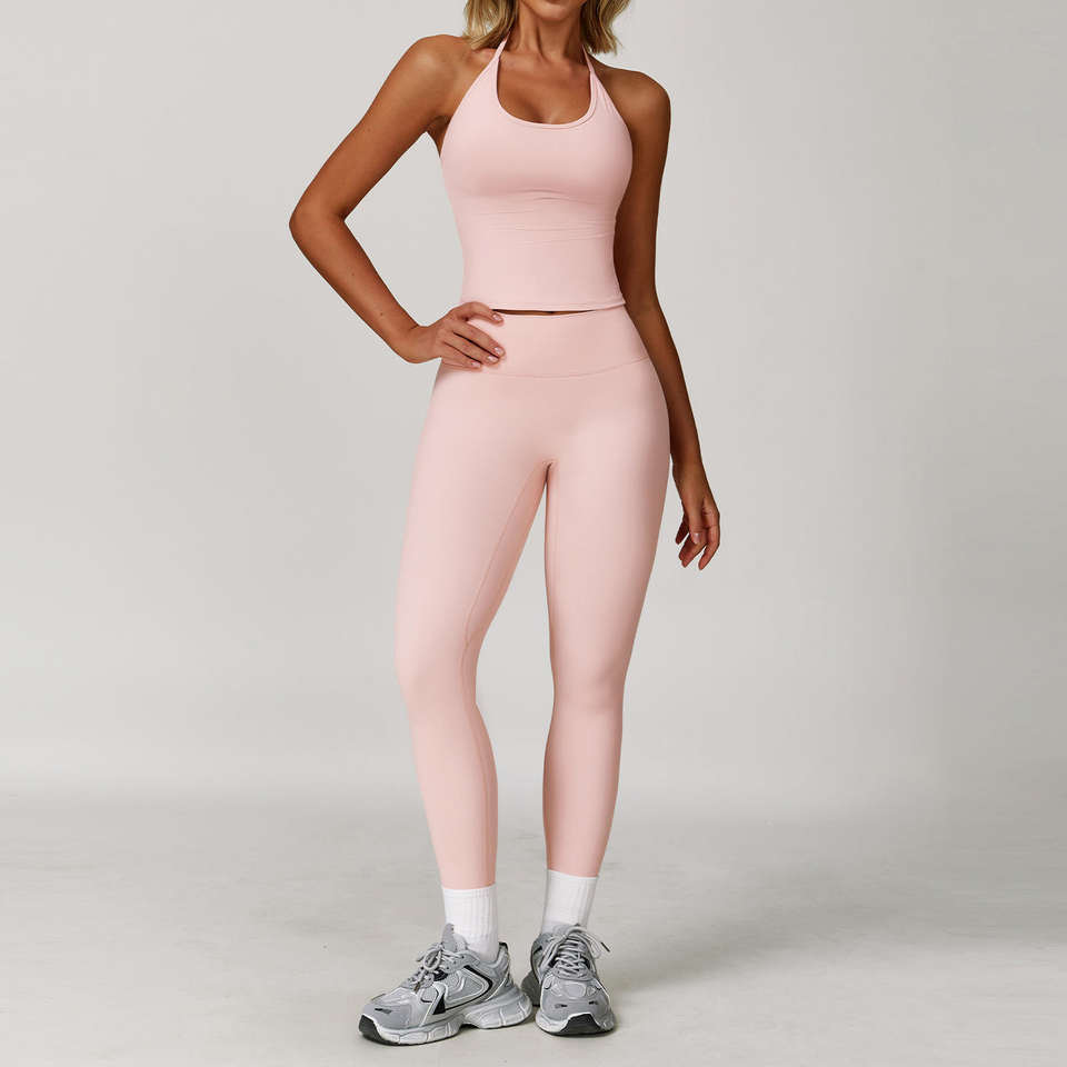 ชุดโยคะเอวสูงสำหรับผู้หญิงชุดเล่นโยคะฟิตเนส2ชิ้นชุดเล่นโยคะคอเชือกผูกโลโก้แบบกำหนดเอง