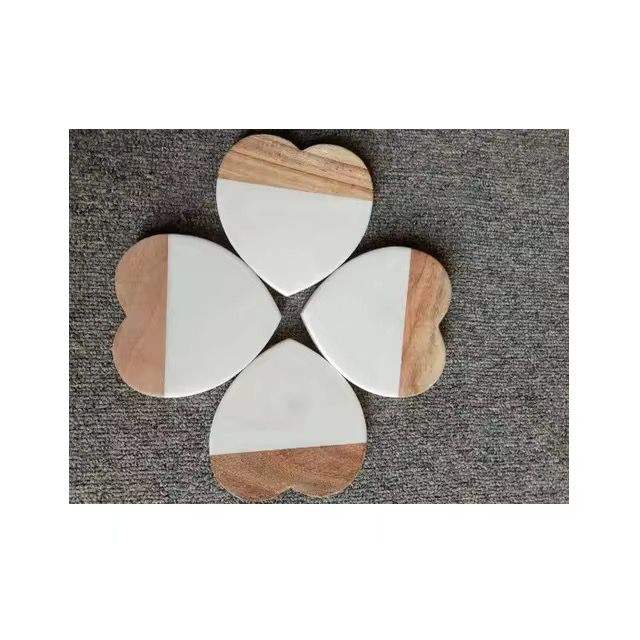 ชุดถาดรองแก้วไม้ทรงสี่เหลี่ยมลายหินอ่อนแบบประกบโลโก้ได้ตามต้องการ