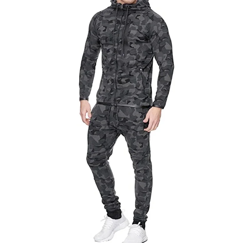 Custom Logo Sport Wear Polyester Tech Fleece Full Zip Tracksuit Hoodie Jogger Two Piece Jogging Tracksuit Set Men Sweat Suit