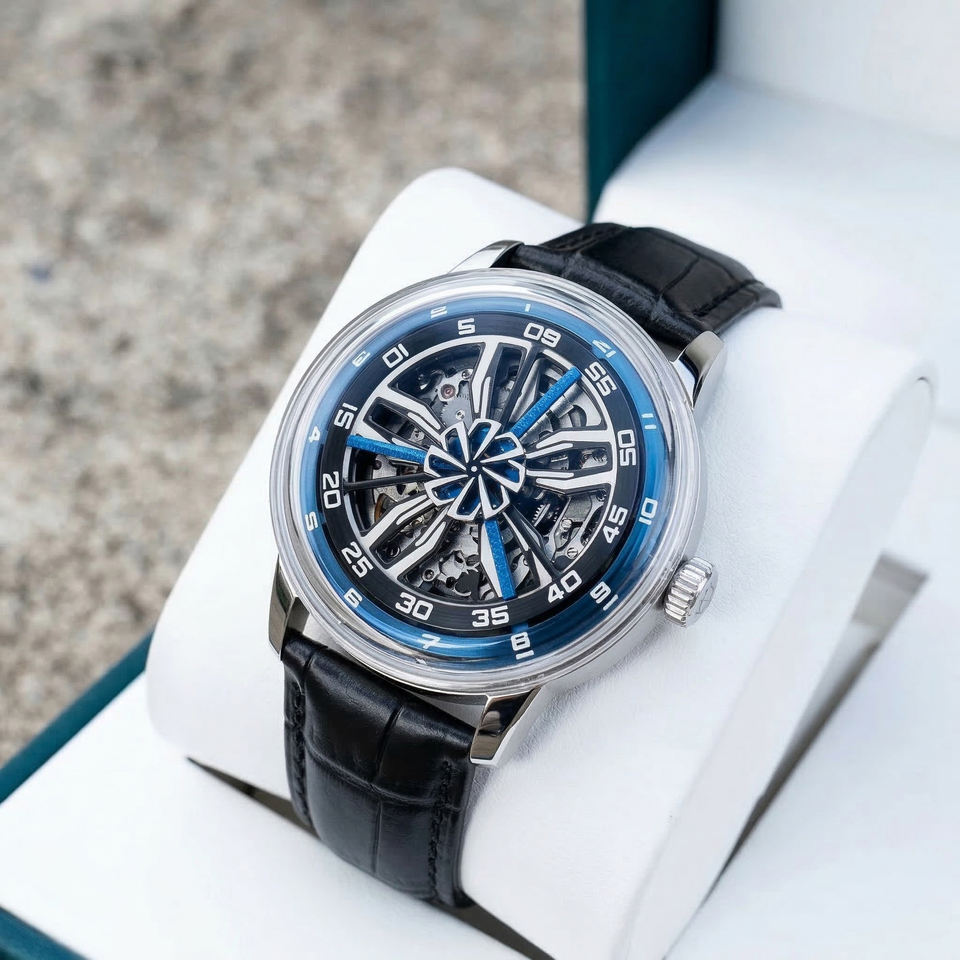 OEM Custom Logo Sports Car Wheel Skeleton Watch Luminous Astronomia Rim Rotation Mechanical Self-winding Watches Manufacturer
