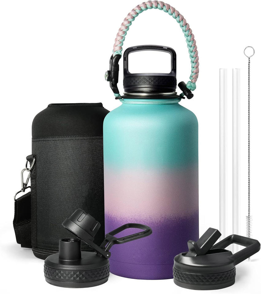 ขวดน้ำสแตนเลสพร้อมที่จับและฝาปิดสำหรับเดินทางขนาด12ออนซ์32ออนซ์40ออนซ์64ออนซ์โลโก้ออกแบบได้ตามต้องการ