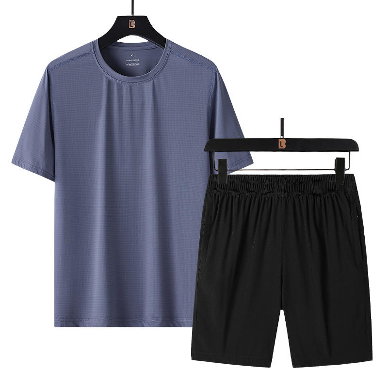 ชุดออกกำลังกายกางเกงขาสั้นและเสื้อยืด2ชิ้นชุดออกกำลังกายและชุดวิ่งออกกำลังกายแบบสั้นสองชิ้นโลโก้ตามสั่ง