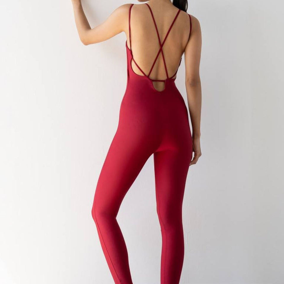 ชุดรอมเปอร์สปอร์ตโลโก้แบบกำหนดเอง ชุดบอดี้สูทแบบเรียบ แห้งเร็ว เปิดหลัง ชุดโยคะ ชุดกีฬา สำหรับผู้ใหญ่ ผู้หญิง จั๊มสูททรงสครันช์