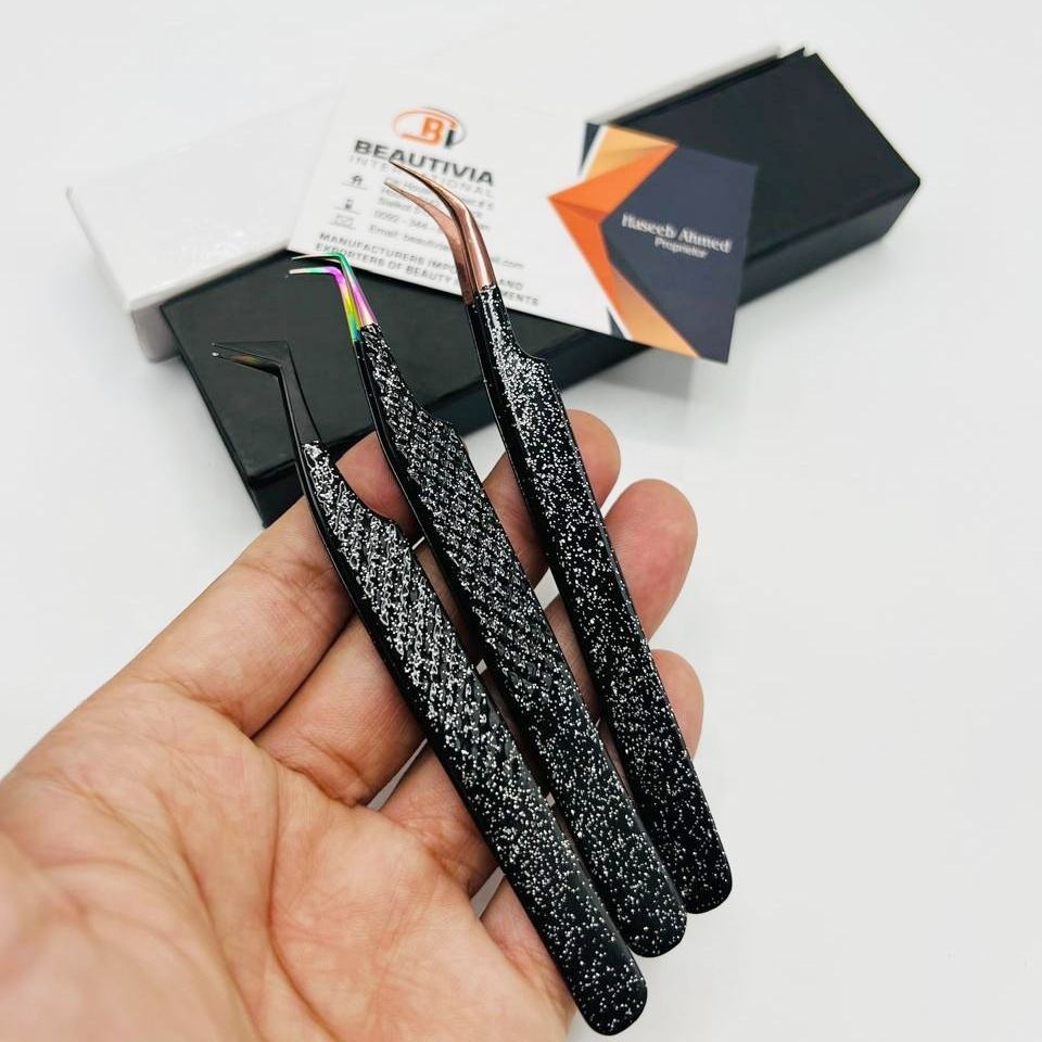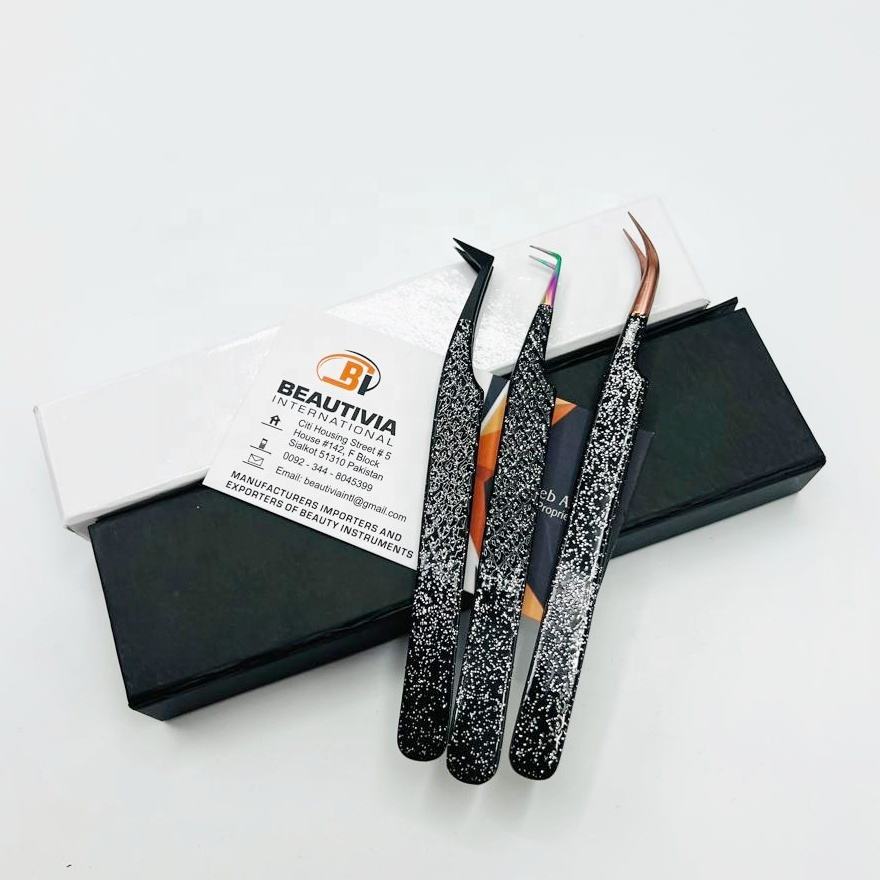 แหนบขนตาปลอมปลายพลาสมาปลายแหลมพร้อมกลิตเตอร์สีเงินทำจากสเตนเลสออกแบบโลโก้ได้ตามต้องการ