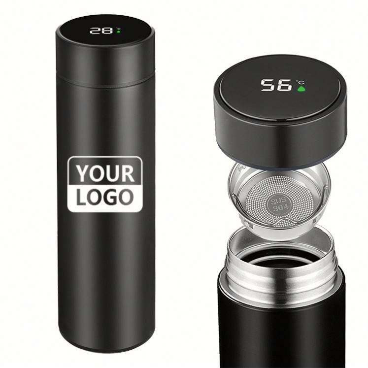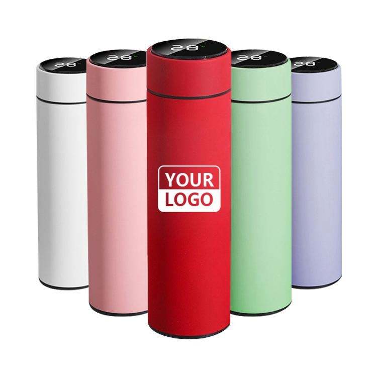 กระติกน้ำเก็บความร้อนสุญญากาศสแตนเลสสตีล 500 มล. แบบมีโลโก้สั่งทำ กระบอกน้ำเก็บอุณหภูมิอัจฉริยะ ดีไซน์คลาสสิก