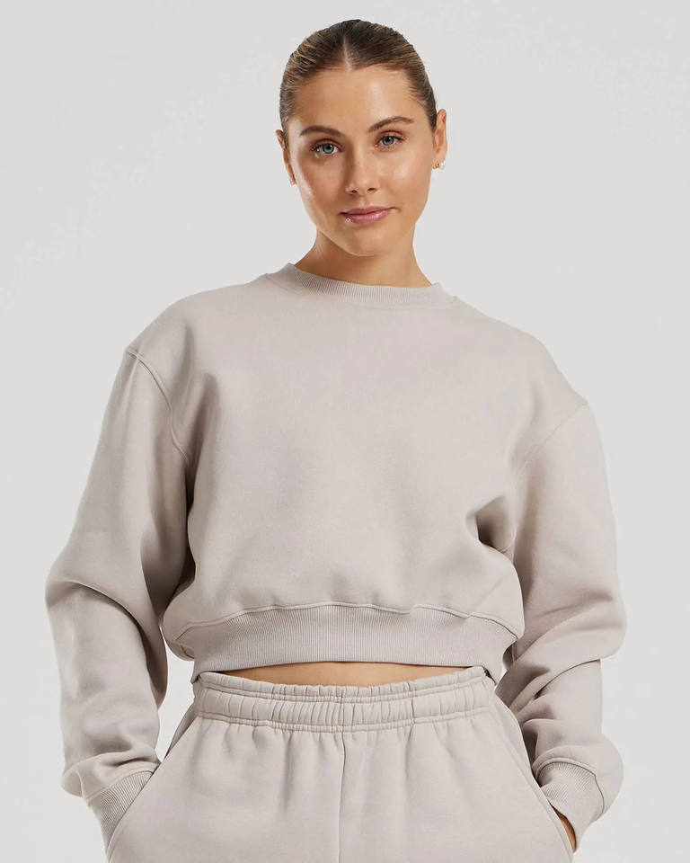 เสื้อสเวตเชิ้ตไหมพรมคอวีทรงครอปสำหรับผู้หญิง ตกแต่งโลโก้ตามสั่ง แขนเสื้อแบบดรอปไหล่ ปลายแขนและชายเสื้อแบบริบ มีฮู้ด ทรงโอเวอร์ไซส์ เหมาะสำหรับฤดูหนาว