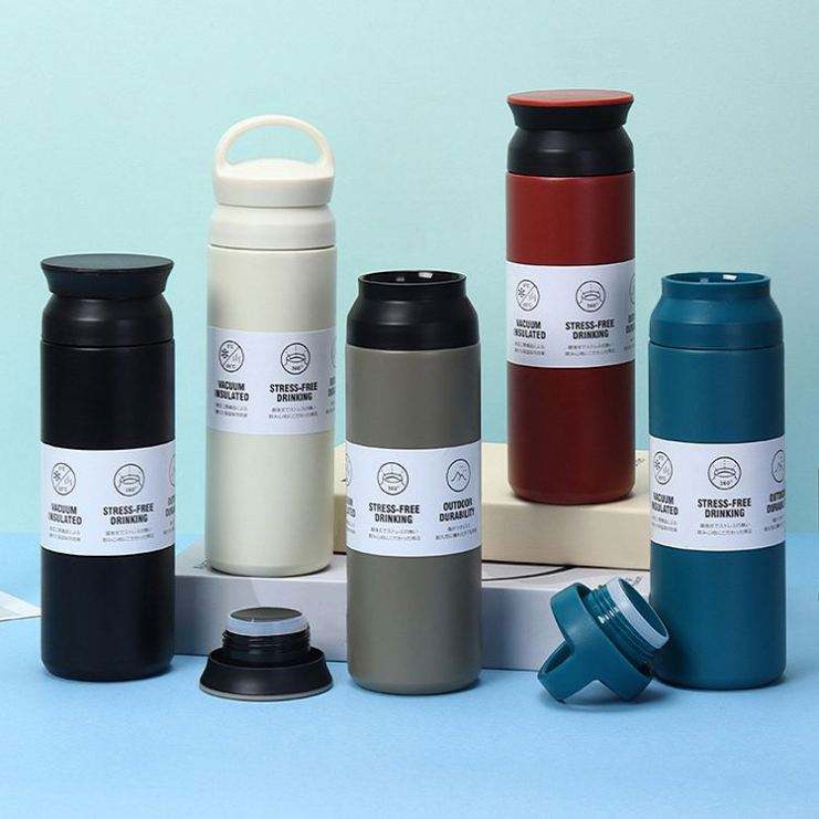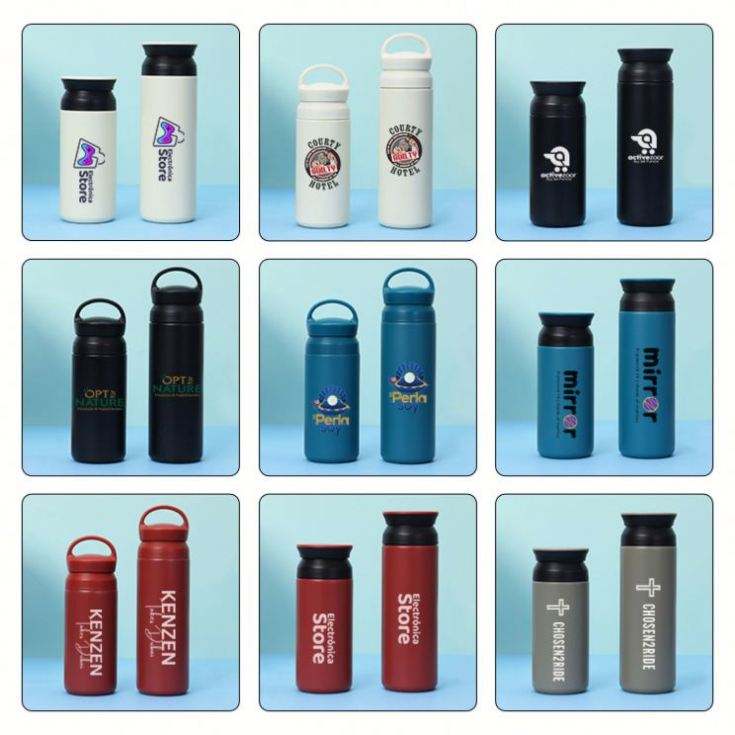 แก้วน้ำเก็บความร้อนสุญญากาศแบบมีหูจับพร้อมฝาปิด พิมพ์โลโก้ได้ เหมาะสำหรับเดินทาง พกพา ใช้กลางแจ้ง ของขวัญสำหรับทีม ทำจากสแตนเลส