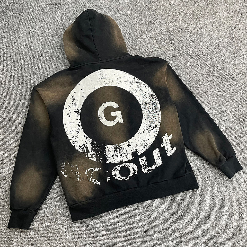 เสื้อมีฮู้ดสำหรับผู้ชายเสื้อมีฮู้ดผ้าฟลีซสีไล่ระดับสีสำหรับผู้ชายลายพ่นสีแนวสตรีทฮิปฮอป