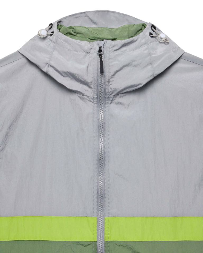 แจ็กเก็ตกันลมมีฮู้ดสีบล็อกผ้าลินินผ้าฝ้าย100% ด้านหน้าพิมพ์ลายแห้งเร็วโลโก้ตามสั่งแนวสตรีท