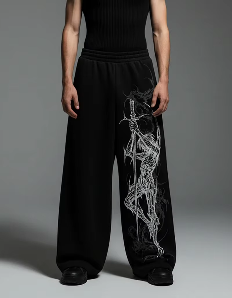 กางเกงวอร์มสตรีทแวร์ลายทางสไตล์วินเทจผ้าคอตตอนหนาน้ำหนักมากทรงโอเวอร์ไซส์ขากว้างพิมพ์ลายกราฟิกพร้อมโลโก้สั่งทำพิเศษสำหรับผู้ชาย