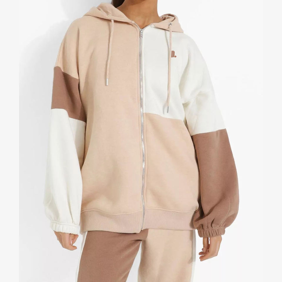 เสื้อมีฮู้ดมีซิปสีสำหรับผู้หญิง