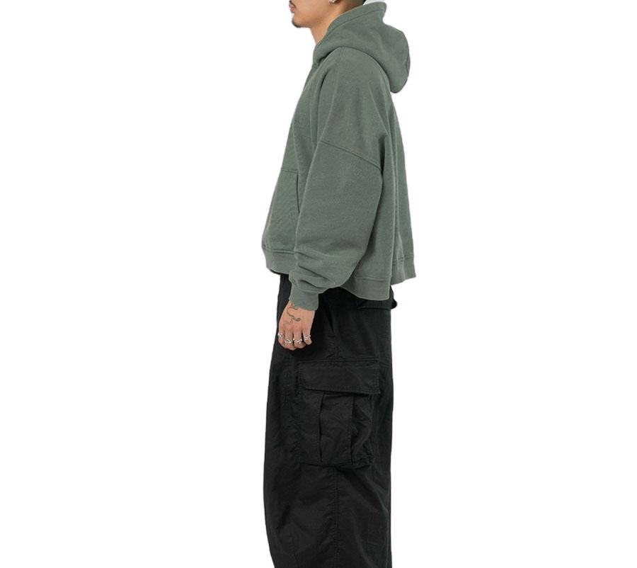 เสื้อฮู้ดดี้ทรงบ็อกซี่แบบครอปฟอกสีสไตล์สตรีทแวร์ผ้าฝ้ายเฟรนช์เทอร์รี่หนา 600gsm พร้อมโลโก้สั่งทำพิเศษสำหรับผู้ชาย ขายส่ง