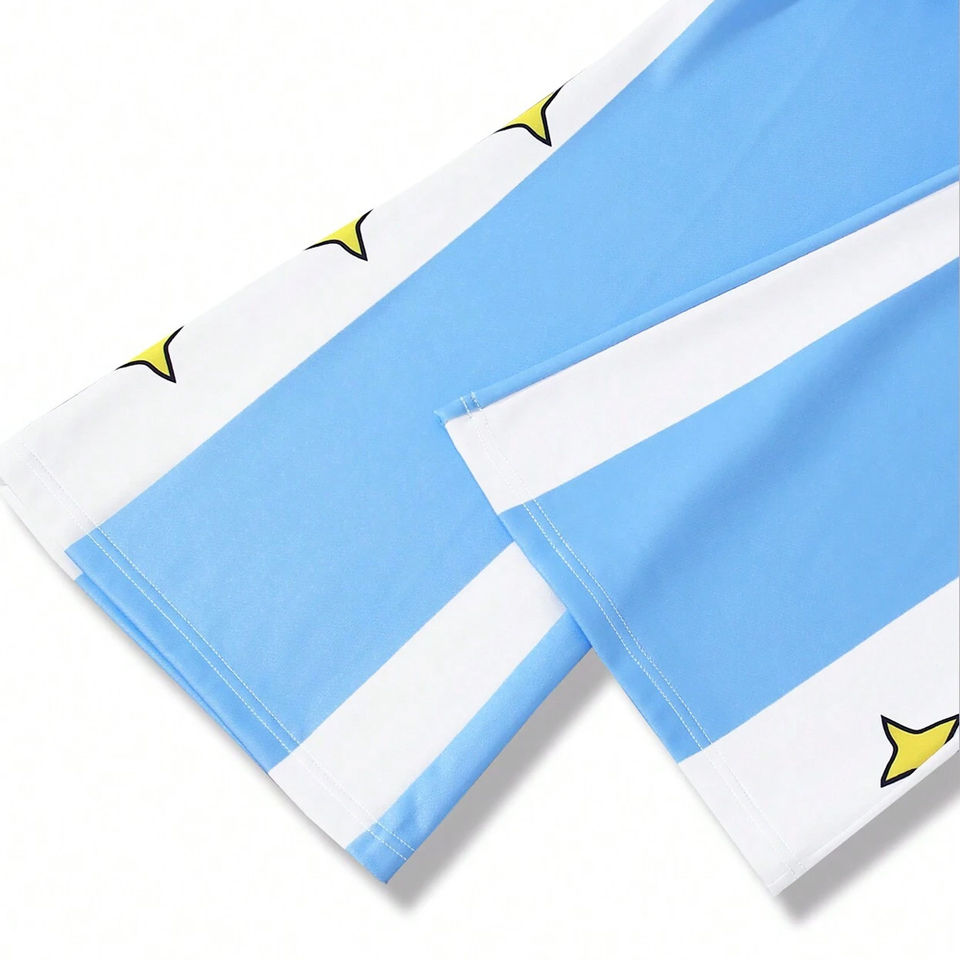 กางเกงขาบานผ้าแคนวาสขาบานของผู้ชายทรงหลวมลายทางสีหวานแบบเรียงซ้อนกันออกแบบโลโก้ได้ตามต้องการ