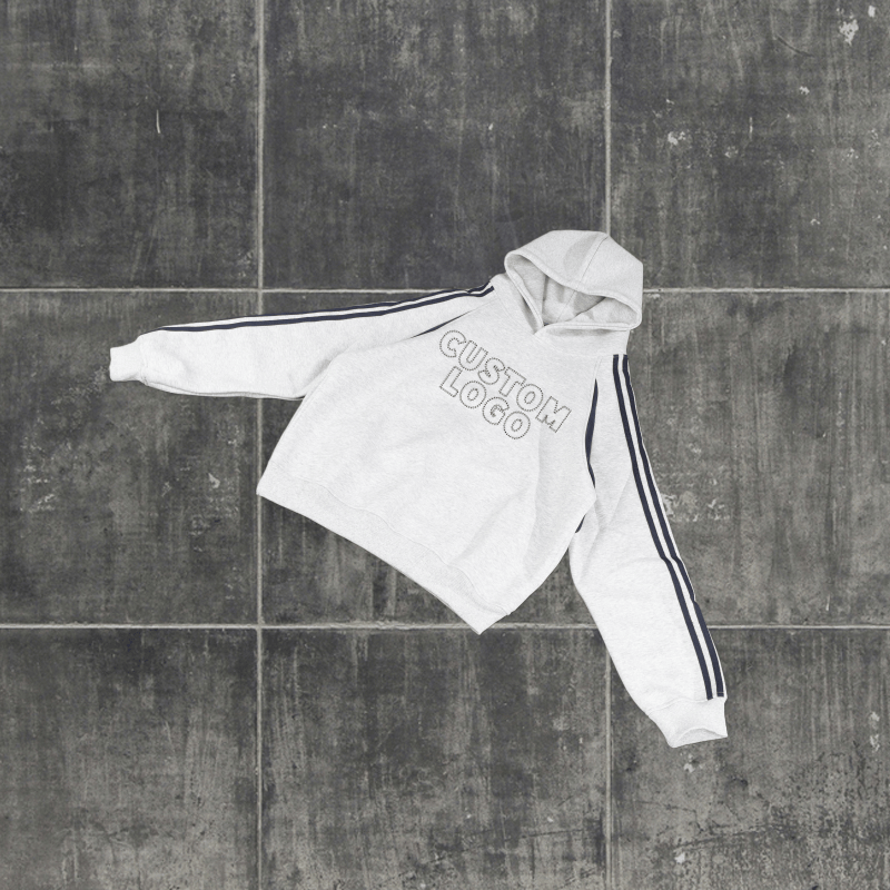 เสื้อฮู้ดแขนลายทางโลโก้สั่งทำพิเศษ ผ้าคอตตอนผสมคุณภาพสูง สไตล์ลำลองสำหรับผู้ชาย