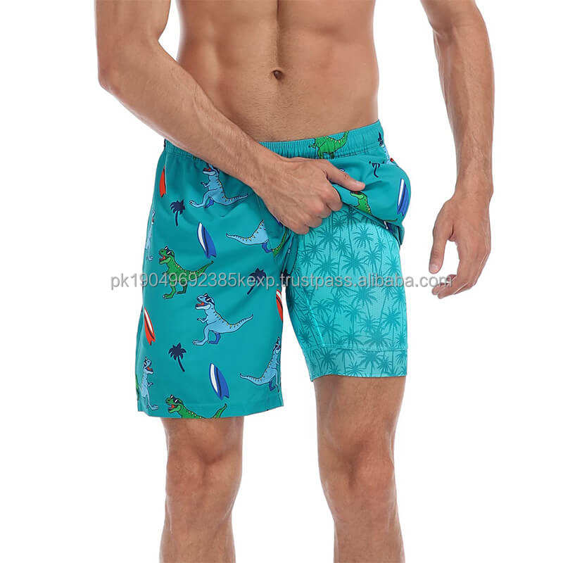 กางเกงว่ายน้ำแบบรีแอคทีฟสำหรับผู้ชายกางเกงขาสั้นสำหรับใส่วิ่งพิมพ์ลายซับลิเมชันโลโก้ได้ตามต้องการ
