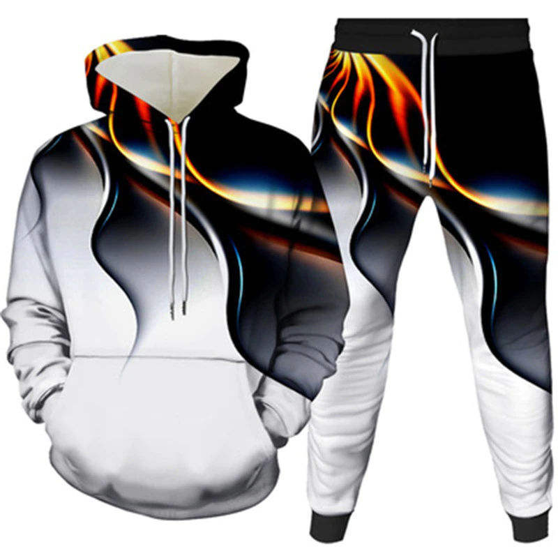 ชุดวอร์มพิมพ์ลายโลโก้แบบกำหนดเอง ชุดเซ็ตสองชิ้น ผ้าโพลีเอสเตอร์ พิมพ์ลายสามมิติ คุณภาพพรีเมียม สำหรับทุกเพศ