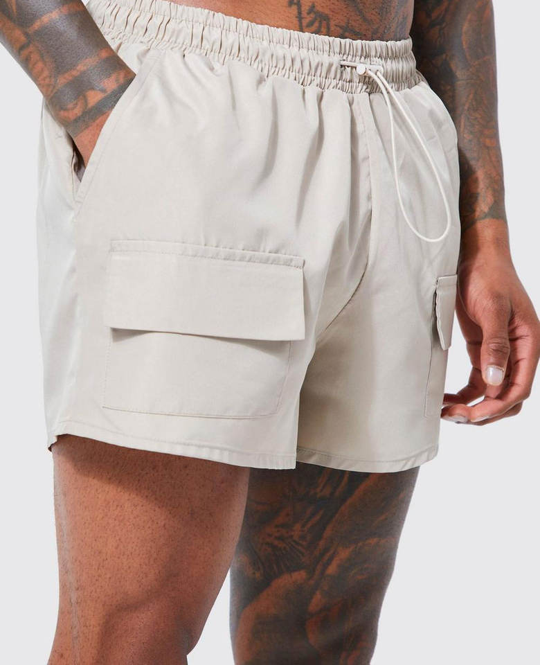 กางเกงขาสั้นผ้าโพลีเอสเตอร์สำหรับออกกำลังกายขาสั้นผ้าแคนวาสสไตล์แบบลำลองมีซิปโลโก้ออกแบบได้ตามต้องการสำหรับฤดูร้อน
