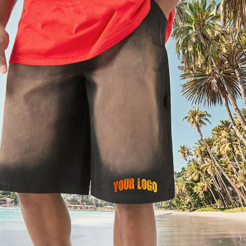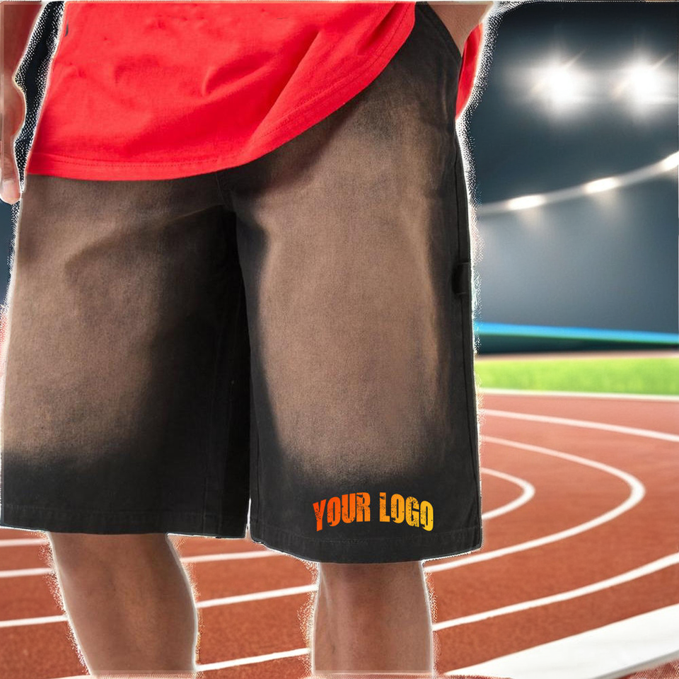 กางเกงขาสั้นผ้าทอเทอร์รี่สำหรับผู้ชายกางเกงขาสั้นเล่นยิมผ้าสแปนเด็กซ์/ โพลีเอสเตอร์ระบายอากาศมีเชือกผูกเอวปานกลางกระเป๋าทึบโลโก้ออกแบบได้ตามต้องการฤดูร้อน