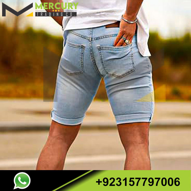 โลโก้ที่กําหนดเองกางเกงยีนส์ผู้ชายฤดูร้อนกางเกงยีนส์ฉีกกางเกงขาสั้นคุณภาพสูงด้อยกางเกงขาสั้นผ้ายีนส์ทรงสลิมฟิตสําหรับผู้ชาย