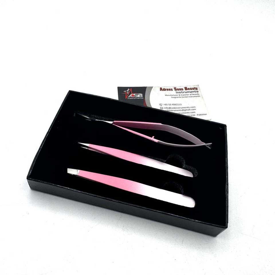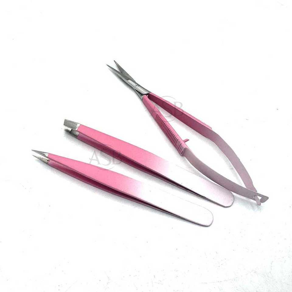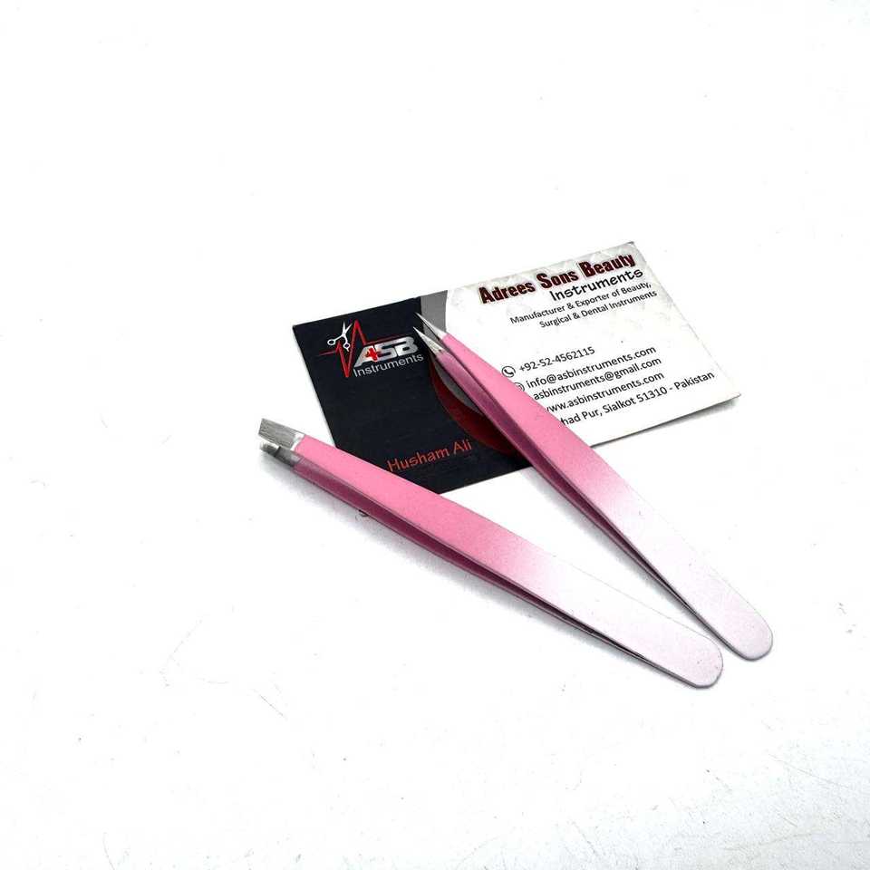 แหนบคิ้วเหล็กแบบยั่งยืนพร้อมโลโก้สั่งทำพิเศษ ปลายแหลมเฉียง สีชมพูไล่เฉด พร้อมกรรไกรตัดคิ้วแบบสปริง สำหรับใช้ในงานเสริมสวย