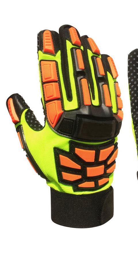 ถุงมือนิรภัยหนัง TPR & ถุงมือผ้าฝ้ายป้องกันการสั่นสะเทือนถุงมือป้องกันแก๊สน้ำมันระดับ5สำหรับงานหนักโลโก้ออกแบบได้ตามต้องการ
