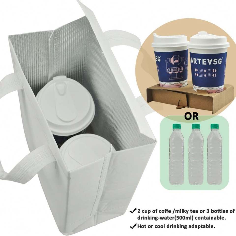กระเป๋าส่งอาหารแบบมีฉนวนเก็บความร้อน กระเป๋าใส่อาหารกลางวันแบบนำกลับมาใช้ใหม่ กระเป๋าส่งเครื่องดื่มชา นม ไวน์ พร้อมโลโก้สั่งทำได้