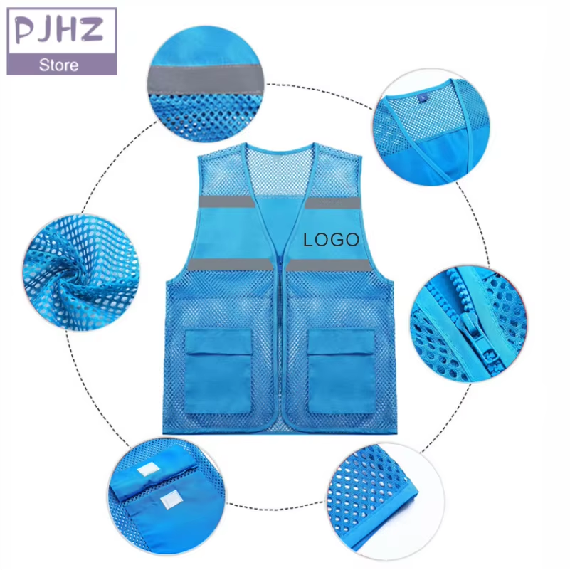 เสื้อกั๊กตาข่ายระบายอากาศได้สำหรับอาสาสมัครเสื้อทำงานพิมพ์ข้อความโลโก้ออกแบบได้ตามต้องการสำหรับฤดูร้อน