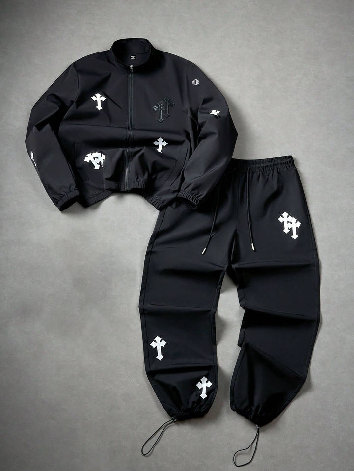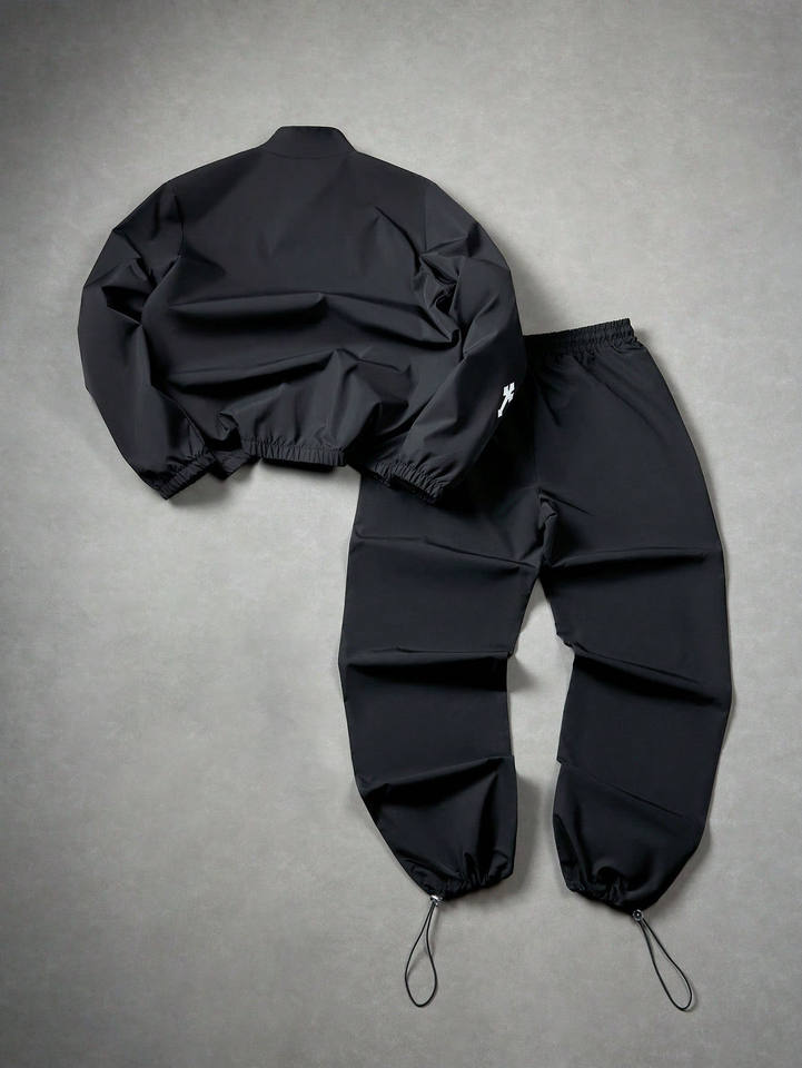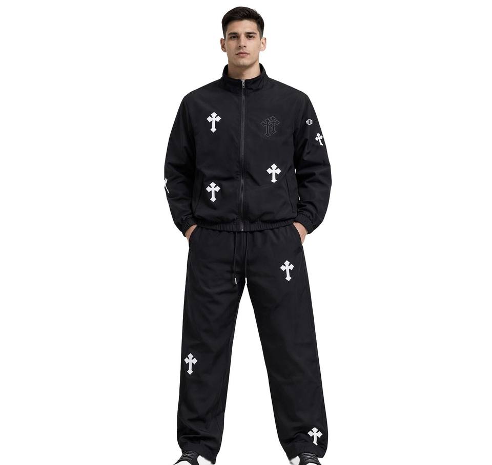 ชุดวอร์มโลโก้สั่งทำสำหรับผู้ชาย เสื้อแจ็คเก็ตกราฟิกน้ำหนักเบาสั่งทำสำหรับผู้ชาย กางเกงจ็อกเกอร์ MOQ ต่ำ เสื้อกันลมขายส่ง