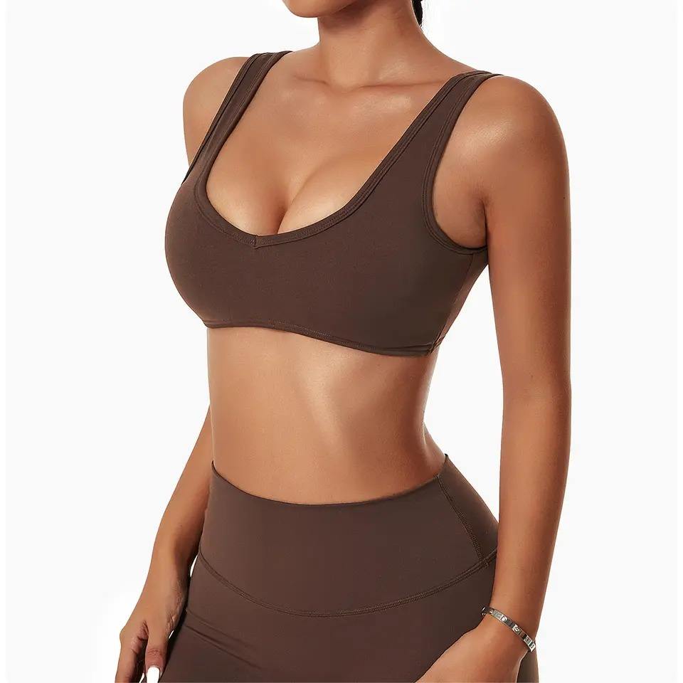 ชุดเล่นโยคะไร้รอยต่อสำหรับผู้หญิงบราดันทรงคอวีเซ็กซี่สำหรับออกกำลังกายเล่นฟิตเนสออกแบบโลโก้ได้ตามต้องการ