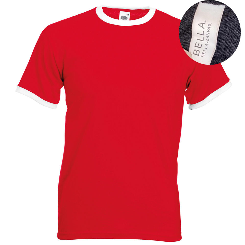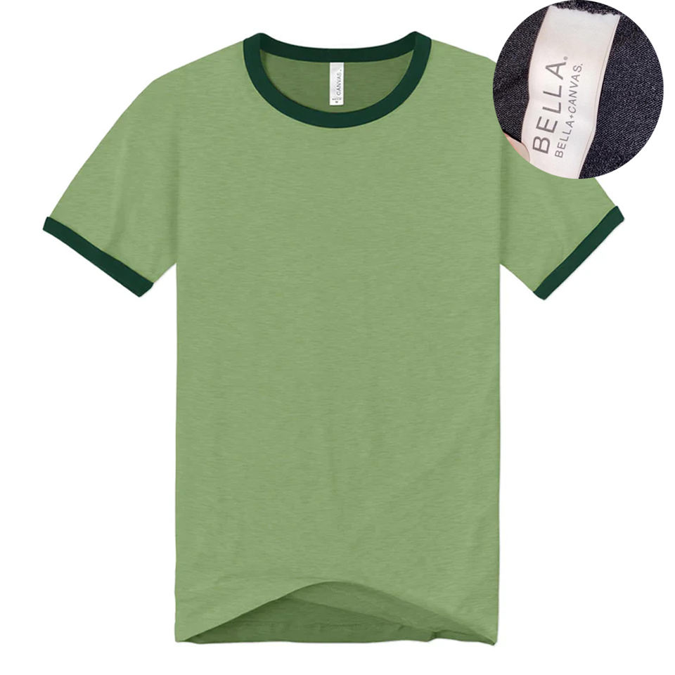 เสื้อยืดผู้ชายแบบสามสีผสมโลโก้ออกแบบได้ตามที่ต้องการเสื้อยืดริงเกอร์ที่ทำจากผ้าฝ้าย/เส้นใยไม้ไผ่