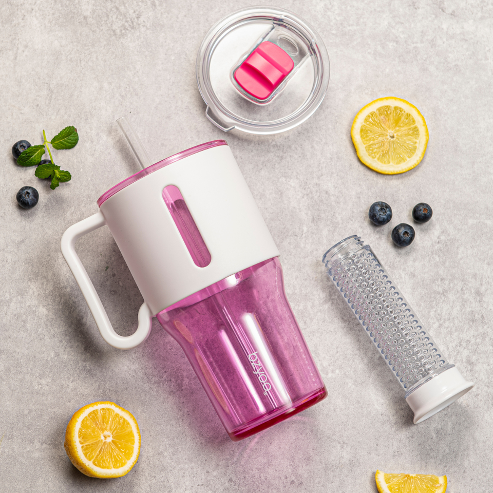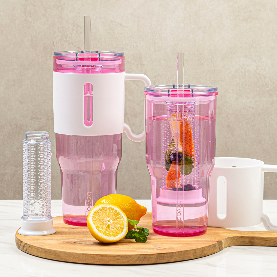 Custom Logo Tumbler With Lid&Straw Color Pink 35oz Small Plastic Tumbler