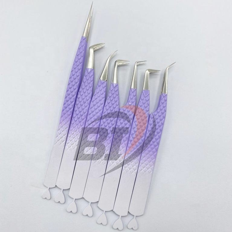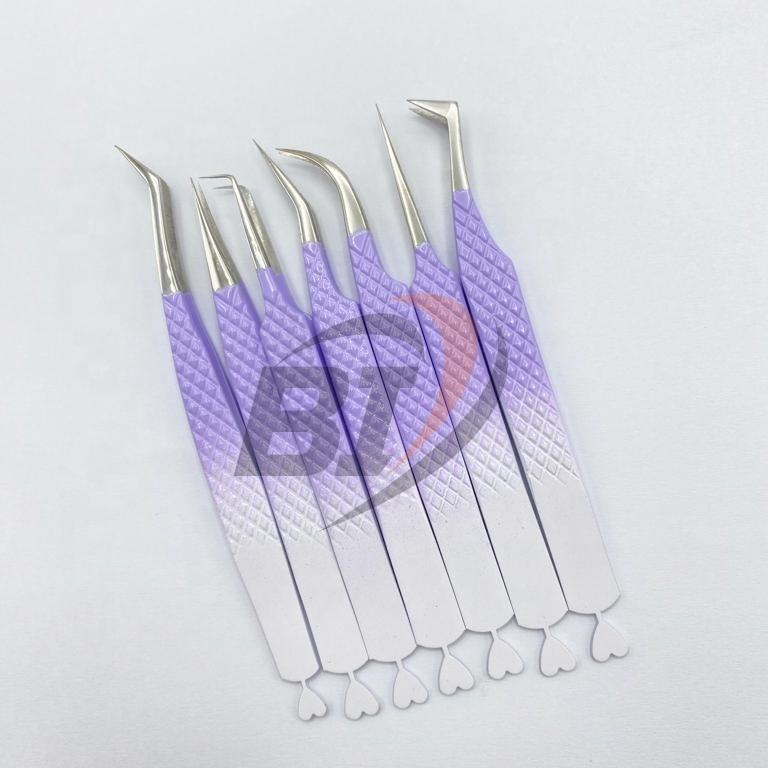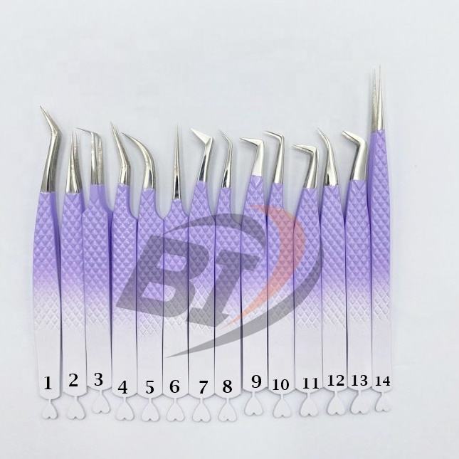 แหนบต่อขนตาสองโทนสีขาว/ม่วงโลโก้แบบมืออาชีพออกแบบได้ตามที่ต้องการ