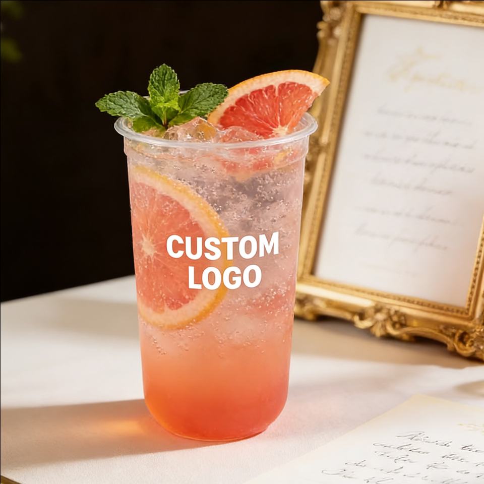 แก้วพลาสติกใสฝ้ารูปตัวยูแบบผนังเดียว พิมพ์โลโก้ได้ ขนาด 90 มม. 20 ออนซ์ 500 มล. สำหรับงานแต่งงาน น้ำผลไม้ โยเกิร์ต เครื่องดื่ม