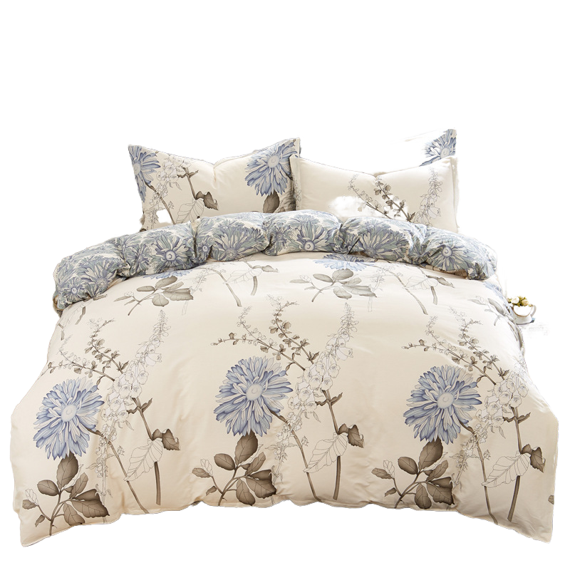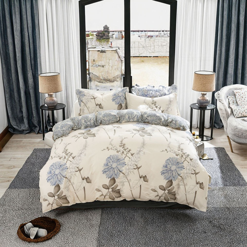 ชุดเครื่องนอนผ้าโพลีเอสเตอร์2ชิ้นลายดอกไม้สีฟ้าปลอกผ้านวมและปลอกหมอนผ้าทอดีไซน์ทันสมัยสำหรับใช้ในบ้านโลโก้ตามสั่ง