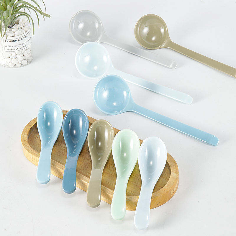 ช้อนพลาสติกสำหรับเสิร์ฟข้าว ซุป หรืออาหารอื่นๆ สำหรับงานปาร์ตี้ แบบทันสมัย ไม่แตกหัก เป็นมิตรกับสิ่งแวดล้อม พร้อมโลโก้สั่งทำได้