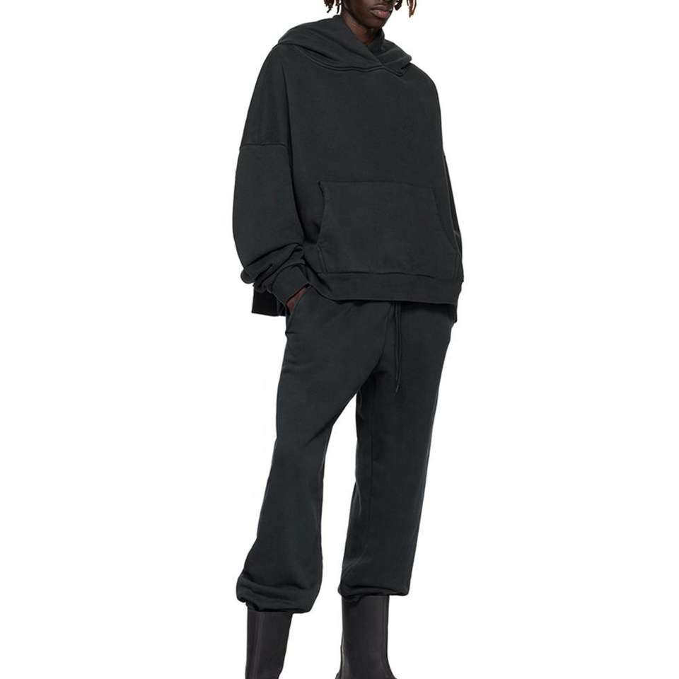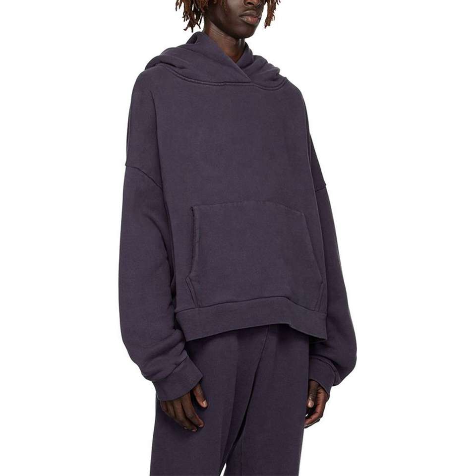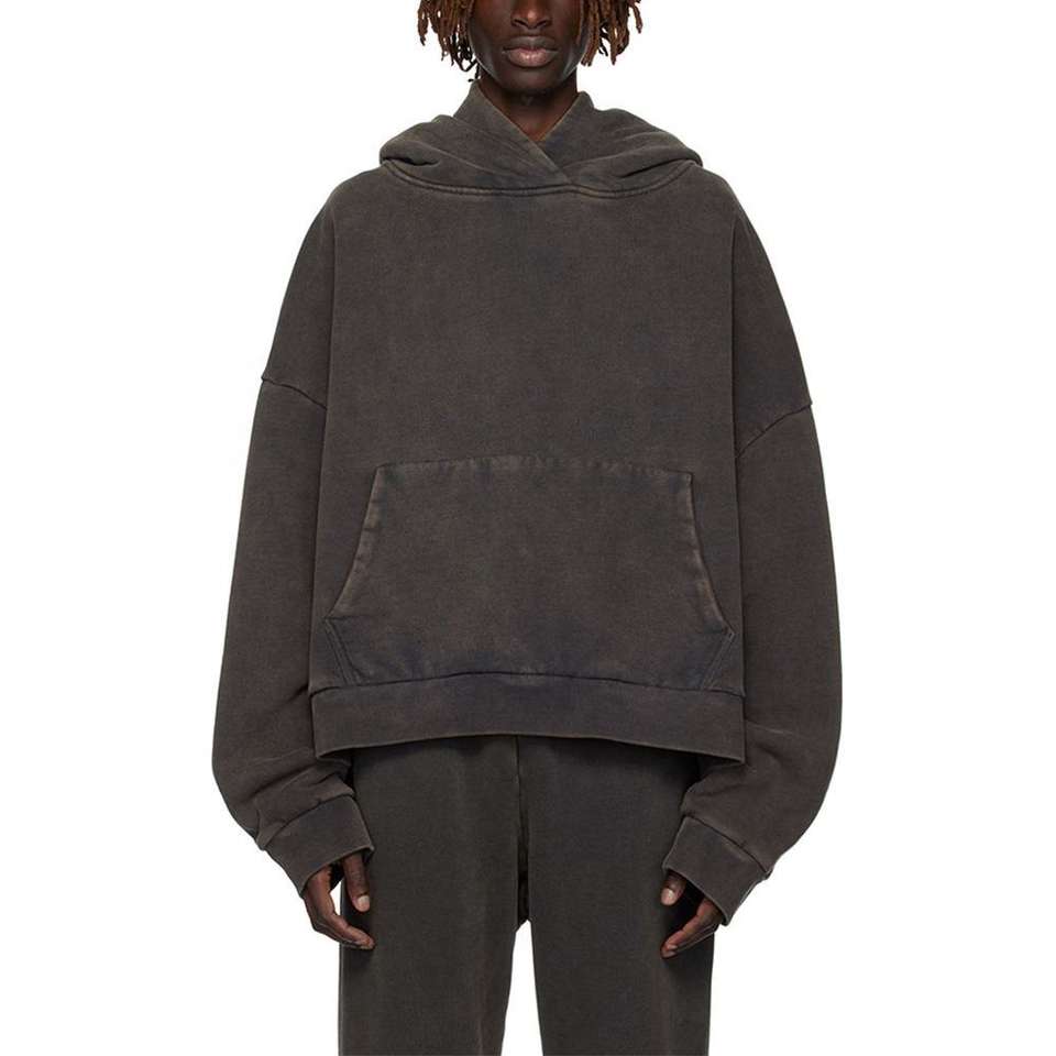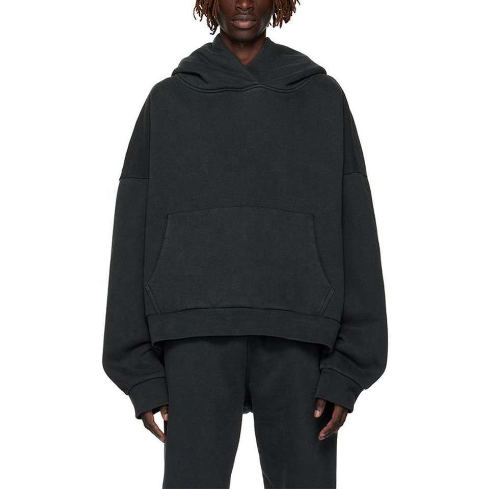 เสื้อฮู้ดปักลายดอกกุหลาบสำหรับทั้งชายและหญิงเสื้อครอป340gsm สีดำโอเวอร์ไซส์ออกแบบโลโก้ได้ตามต้องการ
