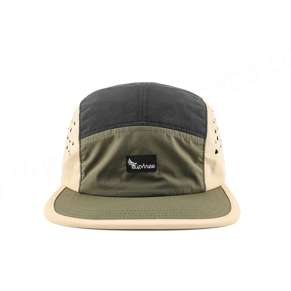 หมวก Snapback 5แผงแบบไม่มีโครงแบบเจาะรูกันน้ำแห้งเร็วกีฬากลางแจ้งขี่จักรยานค่ายปีนเขาโลโก้ออกแบบได้ตามต้องการ